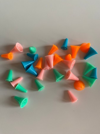 Hold maskene på plass med fargerike maskesamlere i 3 størrelser (8, 11 og 16 cm).